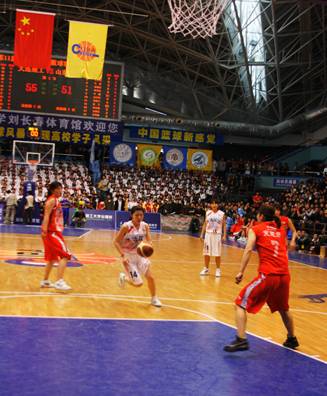 女篮参加第一届CUBA中国大学生篮球联赛(北方赛区)的比赛
