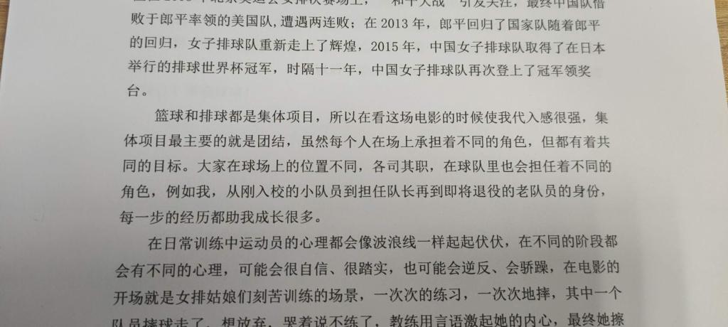 高水平田径队队员龚晓洁表示,在集中观看电影前,自己已经看过一次,但是意犹未尽。作为一名运动员,中国女排的苦我们也吃过,每天都在拼命地训练、跑步、加素质、练力量。